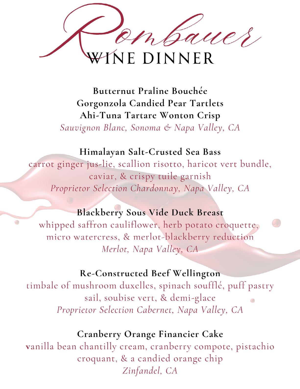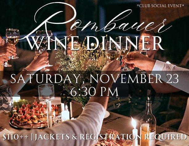 23 ROMBAUER WINE DINNER 6:30 PM Jackets and Registration Required. $110++
