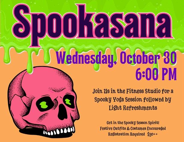 Join Us in the Fitness Studio for a Spooky Yoga Session Followed by Light Refreshments. Festive Outfits and Costumes Encouraged. Registration Required. $30++