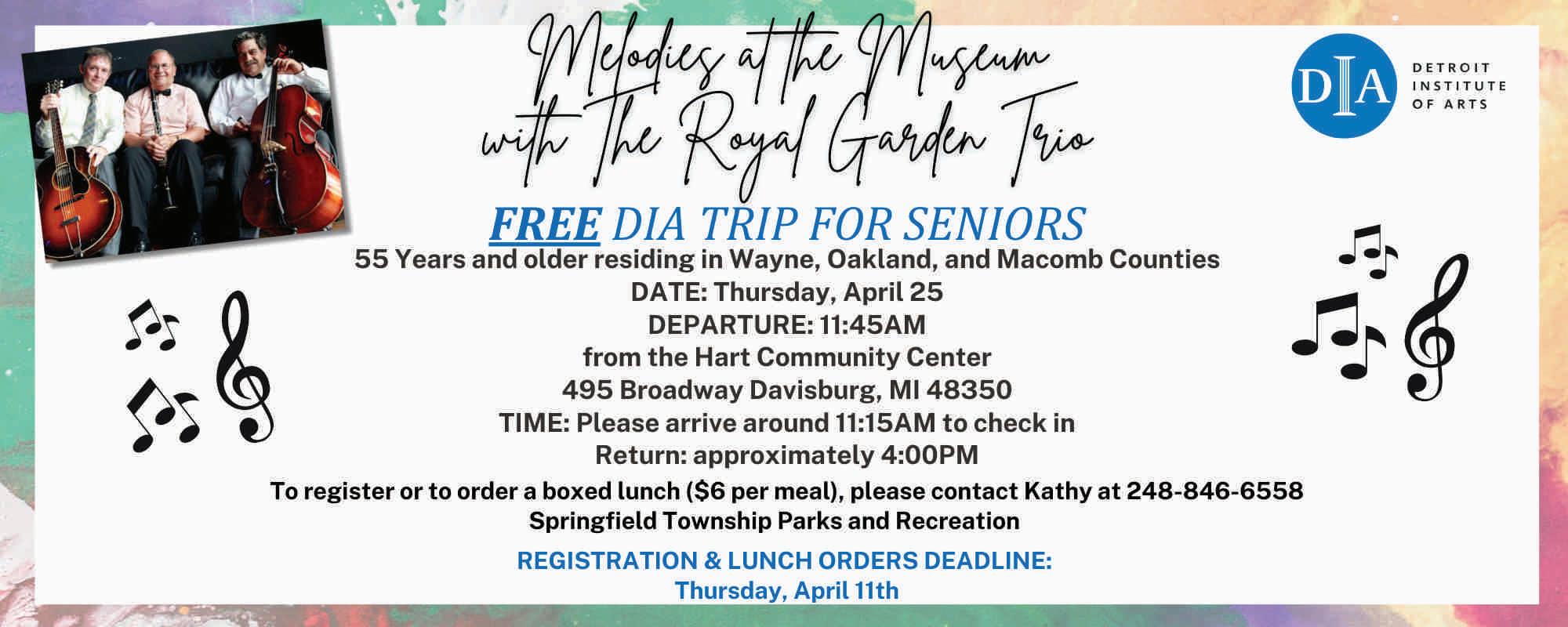 I am very excited to announce that our Hart Community Center renovations, which were made possible with the Oakland County Senior Center Matching grant, were completed on November 28, 2023. Among the renovations that we were able to complete were replacing the flooring, updating the kitchen facility, installing new entrance doors and a new ADA door system. Please visit page 5 of the brochure to see pictures of our newly renovated community center. If you are looking for a place to hold your function, see page 18 Your Facilities to learn more about renting either the Hart Community Center or one of our three park pavilions.