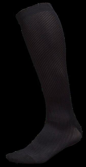 Kompressiosukkia on saatavilla eri kompressioluokissa. Meidän sukkamme ovat luokkaa 1 (kevyt kompressio), ja ne sopivat kaikenlaiseen liikuntaan. Sukat ovat hengittävää ribbineulosta. Sukkien pohjassa on vaimennus, ja kärjen sauma on litteä eikä siksi hankaa. Vasemman ja oikean jalan sukka on muotoiltu ja merkitty erikseen parhaan istuvuuden takaamiseksi.