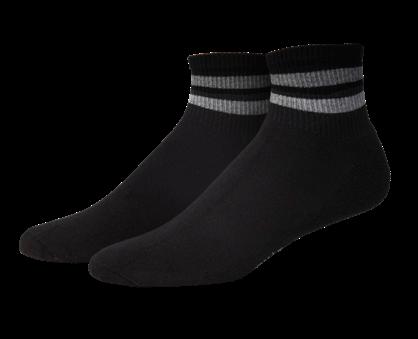 Mukavat, puolikorkeat urheilusukat, jotka sopivat parhaiten sisäurheiluun. Paketti sisältää kaksi paria mustia sukkia.