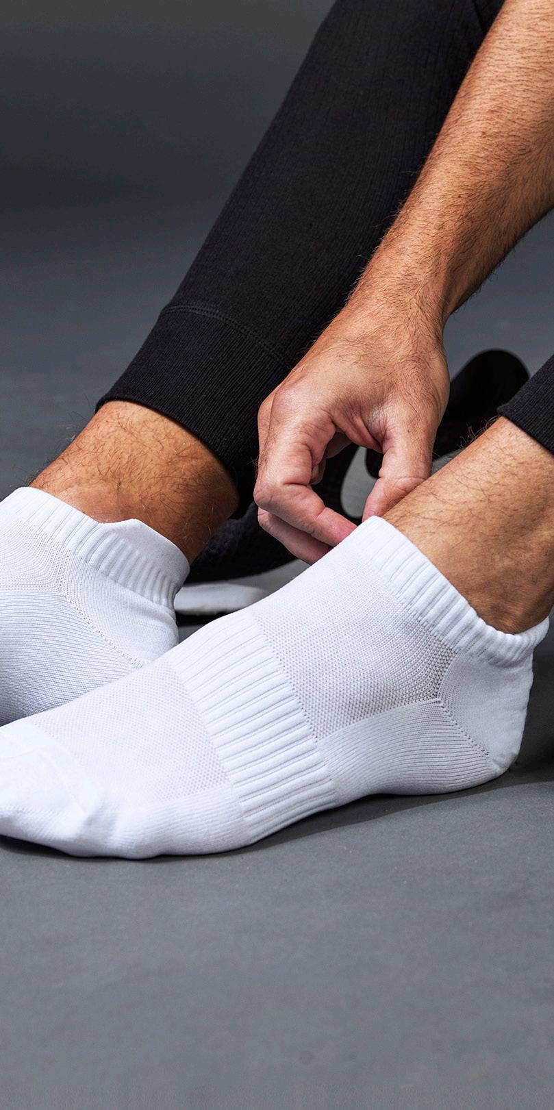 Laadukkaat ja mukavan pehmeät varrettomat sukat. Jalkapöydän lisätuki takaa ihanteellisen istuvuuden. Paketti sisältää kolme paria mustia ja kolme paria valkoisia sukkia.