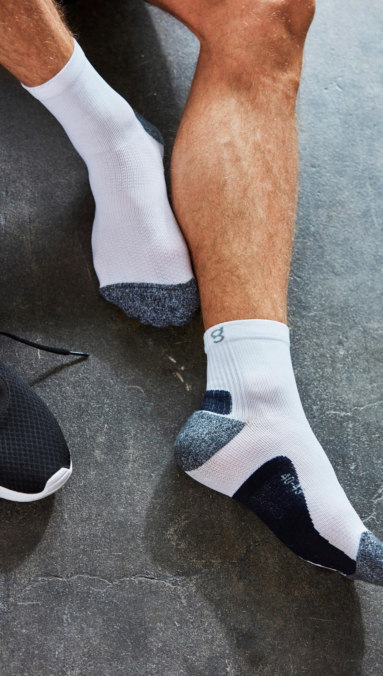 Täydellinen sukka aktiiviselle. Sukassa on kestävä pohja ja erikoiskudos, joka pitää sukan paikoillaan ja on hengittävä. Sukat on muotoiltu vasemman ja oikean jalan mukaan. Paketti sisältää 4 valkopohjaista sukkaparia.