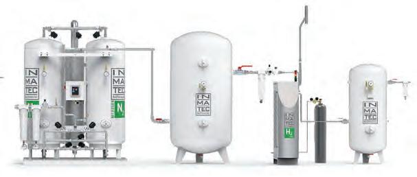 The combination nitrogen generator and hydrogen catalytic converter uses a twostage process to generate nitrogen on-site. First, the IMT PM LASER PSA system (pressure swing absorption) filters nitrogen from the surrounding air, then the H2KAT hydrogen catalytic converter removes the residual oxygen by converting it into water vapor. This creates nitrogen with a purity of up to 99.999%–at up to 50% lower energy consumption compared with conventional methods.