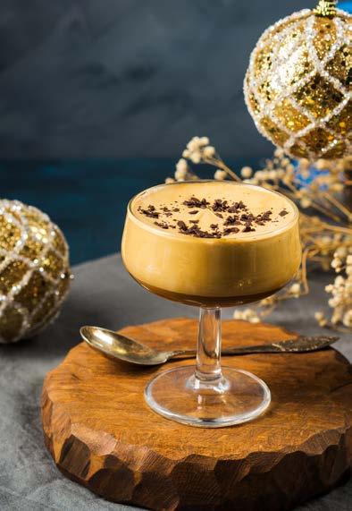 Hæld 2 cl. CUBA Caramel i et cocktail glas og top op med kakaomælk. Pynt glasset med krymmel.