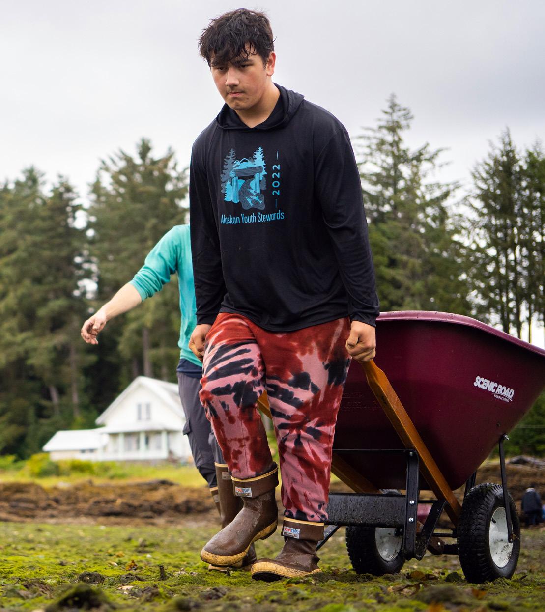 Photo by Lee House Kake Alaska Youth Stewards move rocks for the community clam bed garden project.