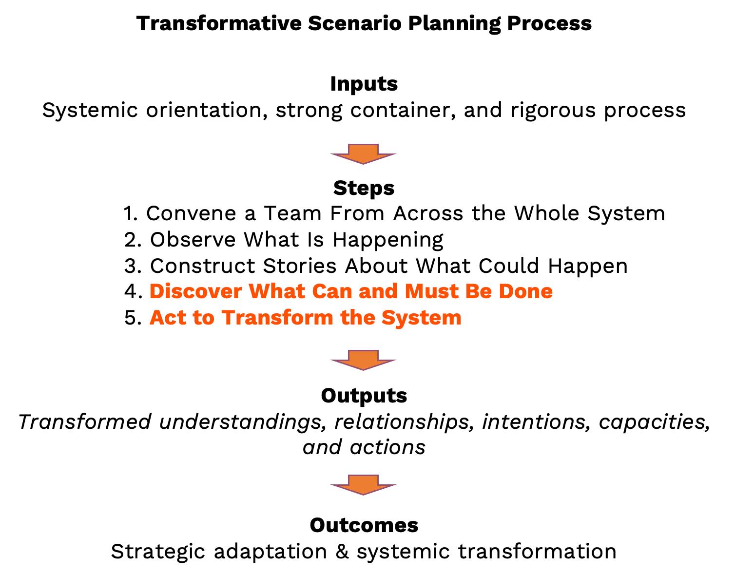 As outlined in Image 1 below, the transformative scenario planning process involves five steps. This User Guide is intended to support steps 4 and 5.