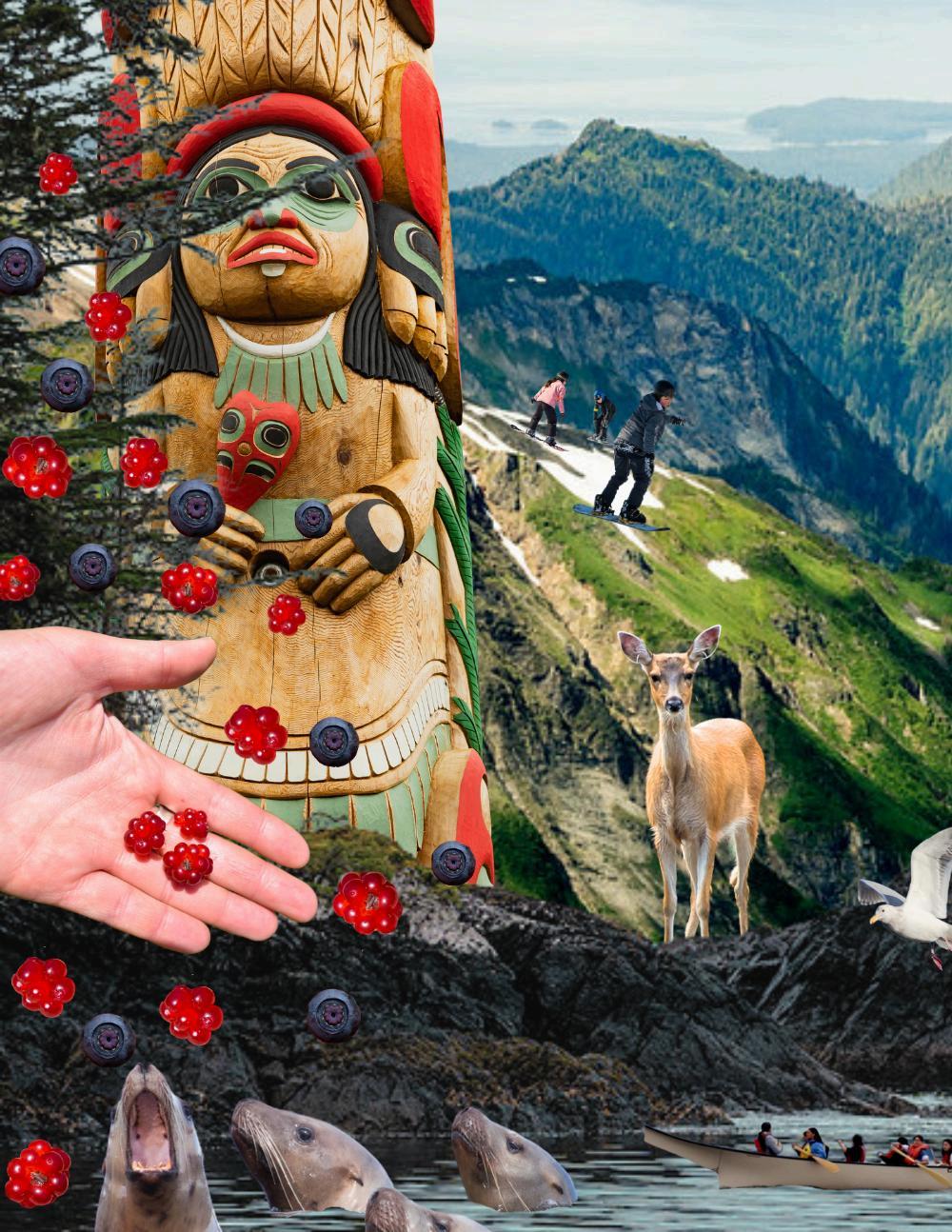 KalilaconnectswiththeTongassthroughherancestral ties to the land. Starting from childhood, the Tongass wasmorethanabackdrop,butaclassroom,playground, andaspacetoconnectwithherculture.Asanadult,her connectionto theTongassisbuiltthroughthetimeshe spendshikingandcamping.Beingwiththelandallows her to feel a sense of continuity with those that came before her and reminds her of the way that her ancestorslivedinharmonywiththeland.