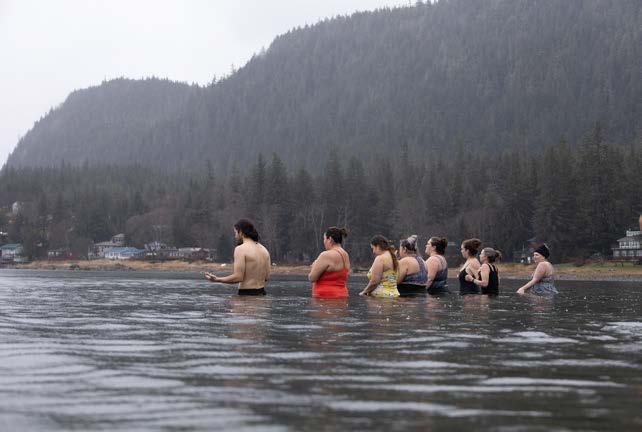 Spawning salmon slap their tired bodies on restored natal streams. A tree coring device creaks as an Alaska Youth Steward twists it into the side of an ancient cedar tree. A group exhales deeply while lowering their bodies into the cold Pacific.
