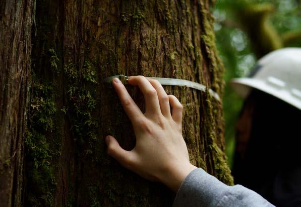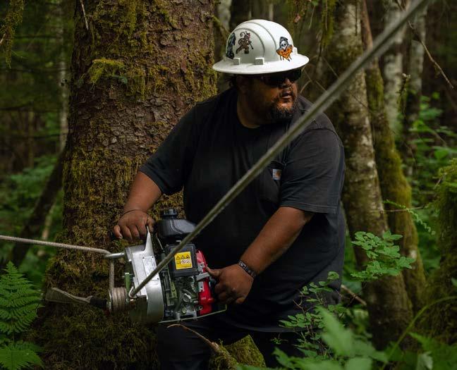 Cover Photo: Marina Anderson rests her arm against a section of cedar where the bark has been carefully removed for weaving during a workshop with Tribal governments, artists, the United States Forest Service, Sitka Conservation Society, and Sealaska. Her tattoo is an outline of a Tin'aa or copper shield.