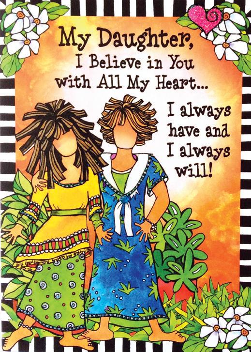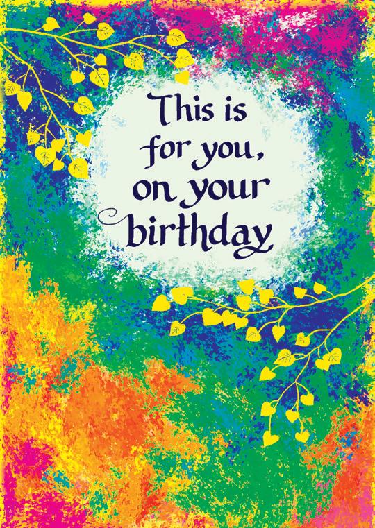 Brilliant graphics and bold color patterns create a vibrant setting for sharing feelings of love, life, and caring.