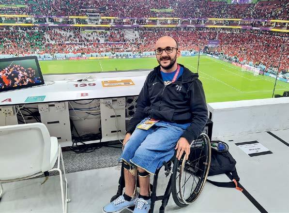 Il y avait huit stades au total et j’ai été dans sept d’entre eux. J’ai assisté à 16 matches. Il y avait 2500 journalistes sur place et j’étais le seul en fauteuil roulant, mais j’effectuais le même trajet et le même travail que les autres. Le métro flambant neuf, qui a coûté des millions, était pratique pour se déplacer et j’étais très autonome. Ce qui me fatiguait en tant que personne en fauteuil roulant, c’est que toutes les cinq secondes, quelqu’un voulait m’aider. J’essayais de rouler le plus vite possible pour que personne n’ait le temps de se deman-