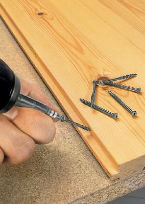 Não necessita de pré-perfuração (dependendo da madeira), a sua ponta diminui eficazmente oefeito de fissuração. A ponta quadrada afasta as fibras da madeira e reduz o binário deaparafusamento.