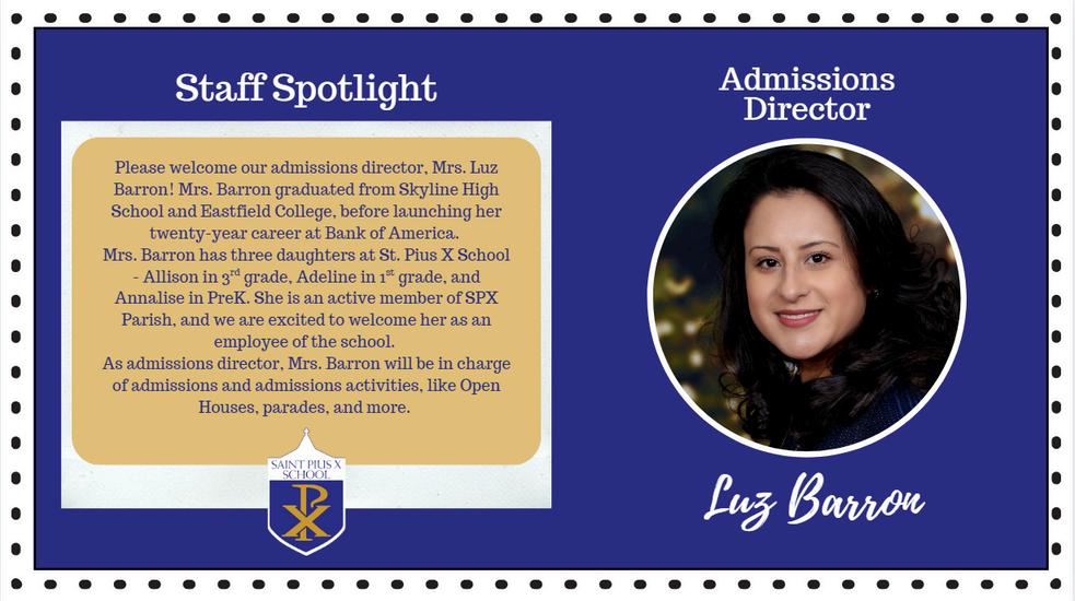 FLORENCIA BRAY, ASSISTANT PRINCIPAL/SPANISH FBRAY@SPXDALLAS.ORG