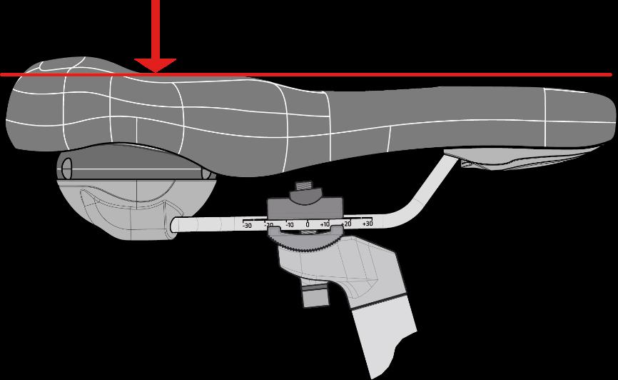 Die Sattelnase sollte waagrecht stehen. Sollten Sie trotzdem das Gefühl haben, nach vorne zu rutschen, können Sie die Sattelnase leicht nach oben neigen.