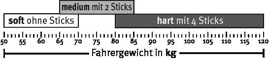 De configuratie van de stokken moet altijd symmetrisch zijn, d.w.z. links en rechts moeten altijd gelijkelijk zijn uitgerust. Zonder stokken wordt de demper zachter - vooral de rotatie rond de lengteas wordt sterker. Of u met of zonder stokken rijdt, hangt af van uw persoonlijke gevoel, zithouding en lichaamsgewicht.
