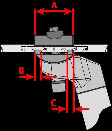 Die Klemmung der Streben muss wenigstens eine Länge „A“ (oder Stützabstand) von 32 mm aufweisen. Die minimale Länge „B“ und „C“ jeder einzelnen Klemmfläche muss wenigstens 7 mm betragen.