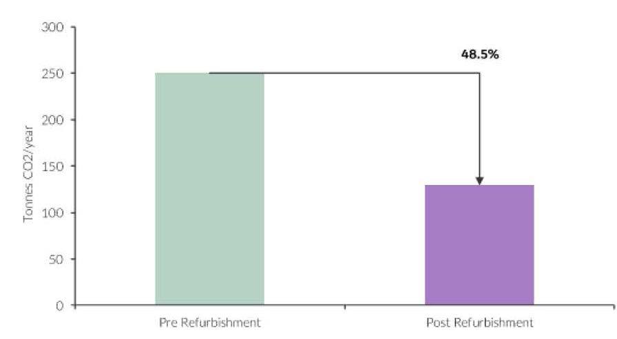 Building 7 has achieved a 48.5% reduction in annual carbon emissions following retrofit.