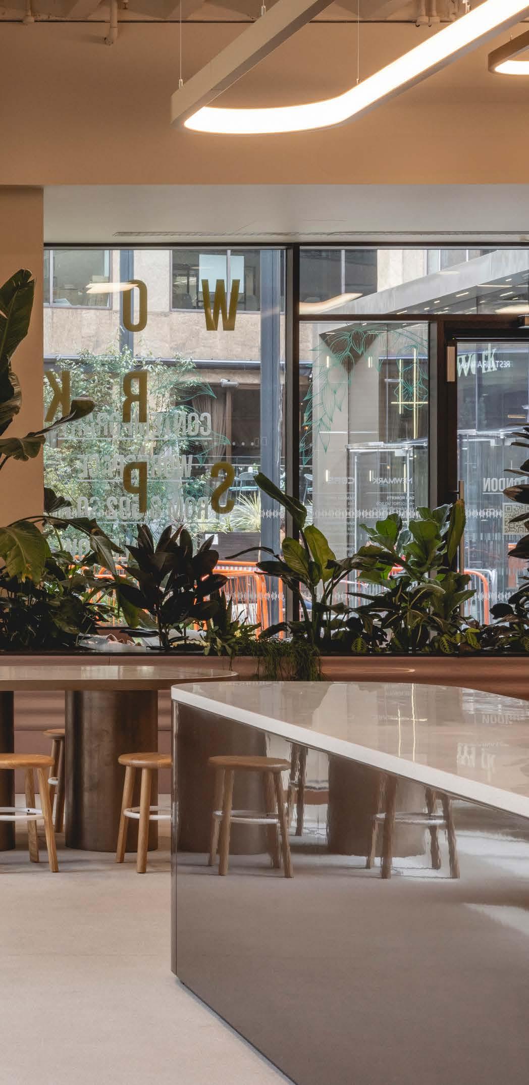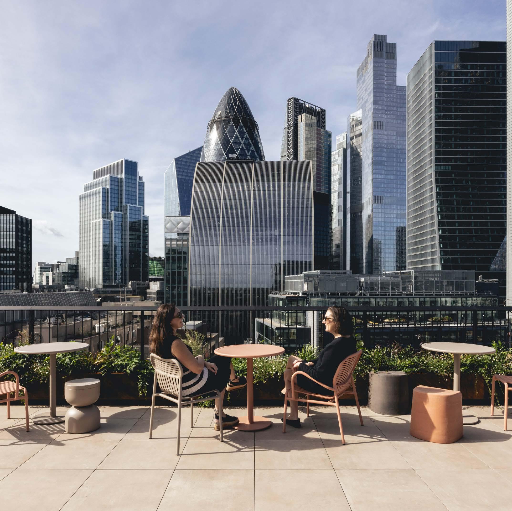 Openable bi-fold doors adjoining on to an external terrace connect the indoor to the outdoor Devonshire Square campus. The provision of outdoor furniture nestled amongst planters activates and enlivens the ground floor and contributes to the location’s vibrancy.
