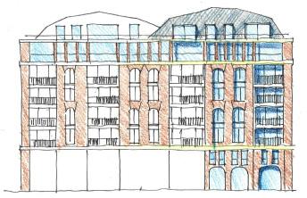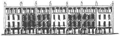 The 14 townhouses take inspiration from historical developments in the area, with rich, layered elevations and a strongly expressed base, middle and top.