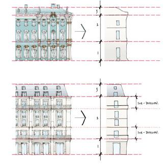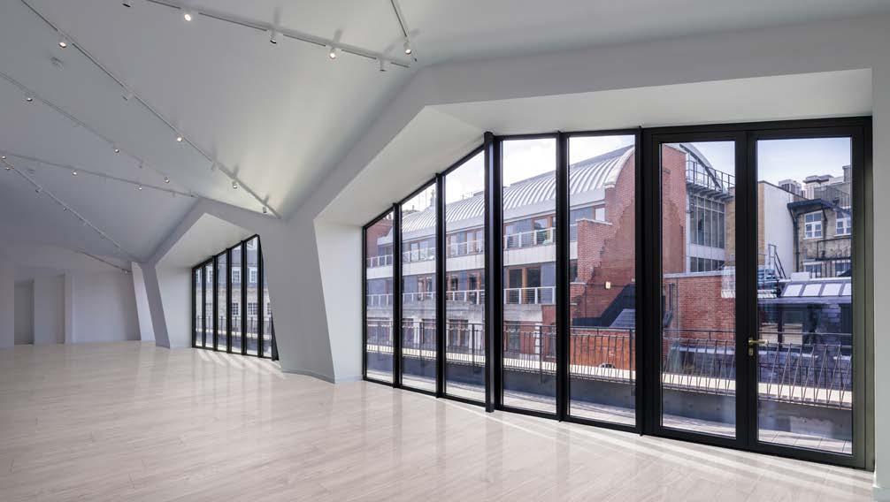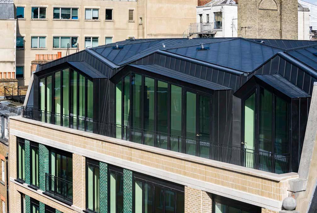 High quality office and retail spaces are provided within the existing building structure behind a new facade, while a new top floor is expressed as an irregular folded mansard, the erratic playful form making a nod to Soho’s history of rebellion.