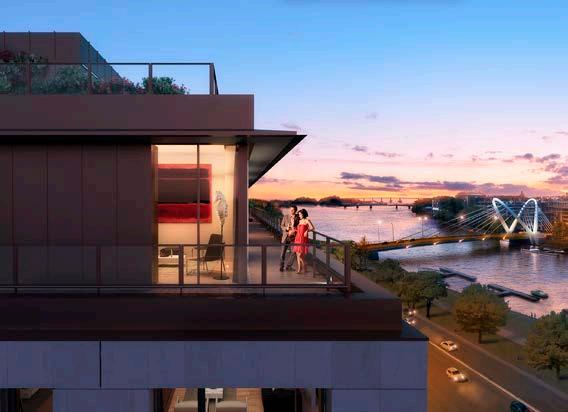 Part of a mixed-use masterplan, the residential building embraces the river and the new public realm.