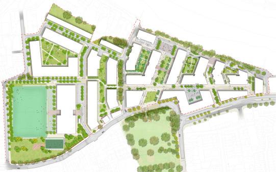 This phase provides the affordable housing for the scheme, consisting of intermediate and socially rented homes, as well as extra care senior living homes and a sports centre.