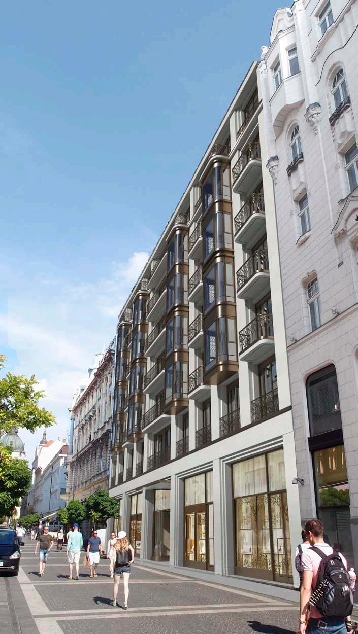 Located on one of the most iconic streets in Budapest next to Gresham Palace, the design of the facades, apartment interiors and branding set a new standard for residential developments in the city.