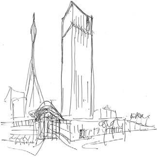 Retained historic buildings reinforce the prevailing street pattern, while the elegant contemporary tower refines the open space leading to the river.