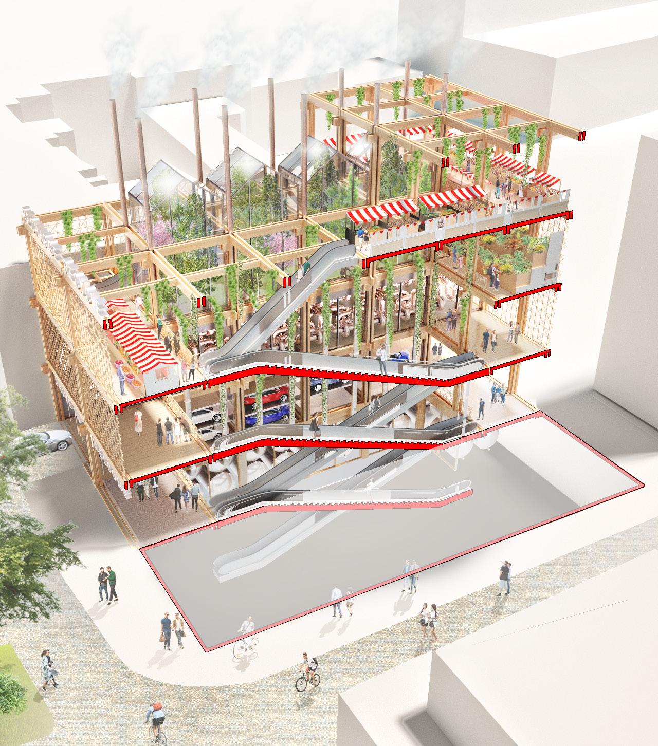 Proposition in response to the GLA’s carbon zero targets for a hybrid building with facilities which convert residual waste into useful energy, whilst encouraging personal interaction.