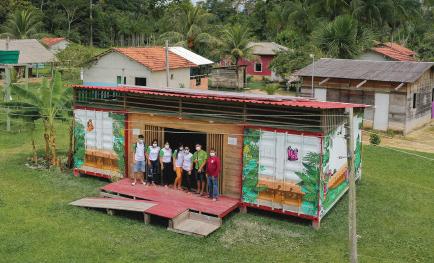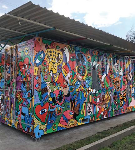 Intelligent repurposing of a redundant shipping container to develop a modular unit able to provide practical learning space with light, shade and utility at an affordable cost.