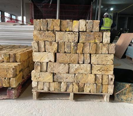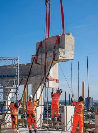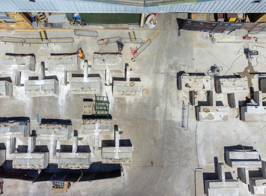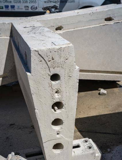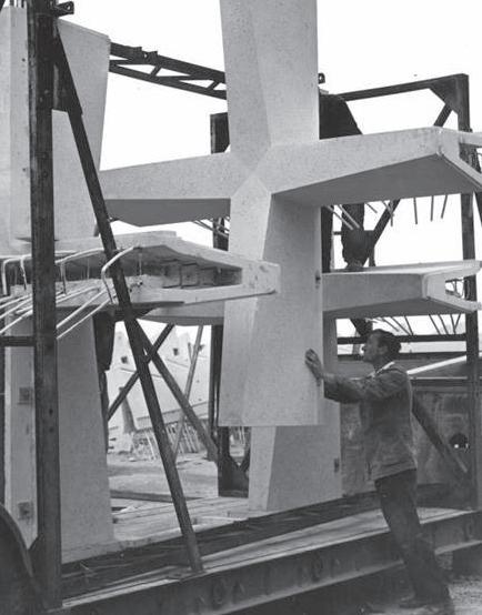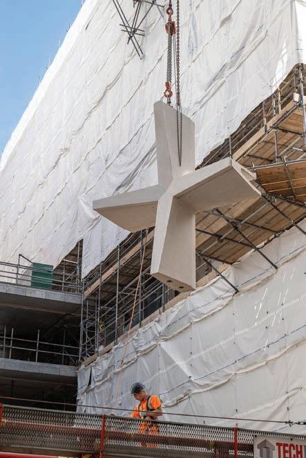 New, pre-cast cruciforms being delivered to site. Their detailing and materiality match the original elements.
