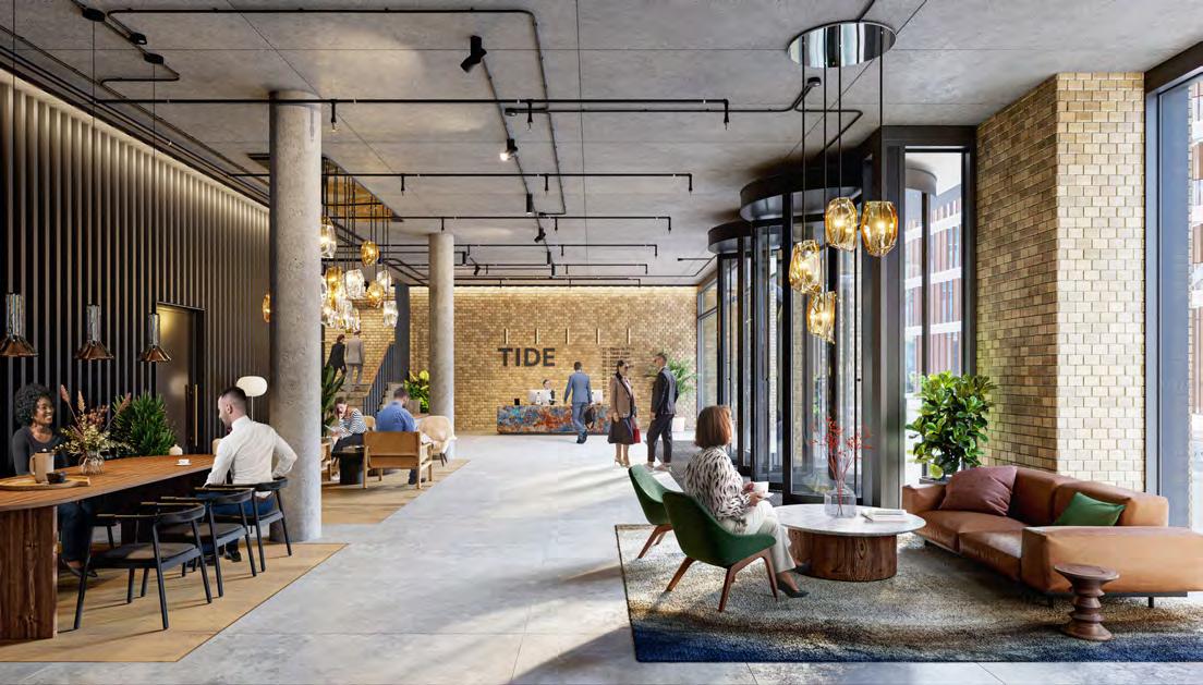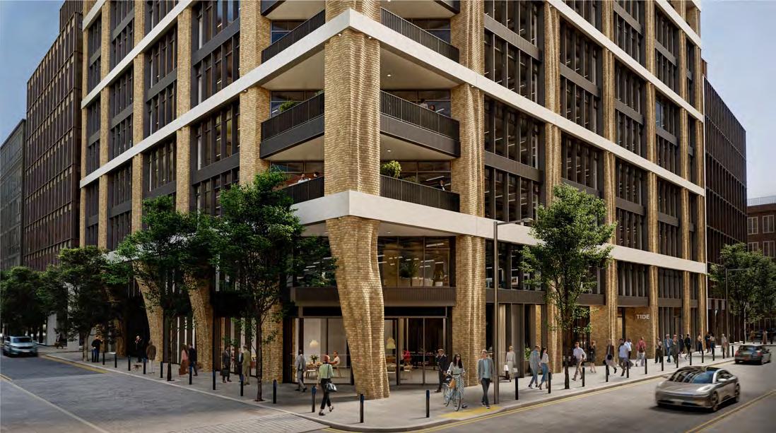 TIDE – A significant new workspace building in Southwark. Drawing its inspiration from the ebb and flow of the river, the brick façade of the building employs cutting-edge water jet technology to give the brickwork a fluid quality, challenging the preconceptions of what is possible with this material.