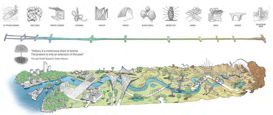 Ghadan 21 – This significant masterplan for the main road running though the middle of Abu Dhabi Island was a huge departure from what we normally do, but was an incredibly exciting project. Sculpture parks, feature intersections with art and installations and a huge park with two mosques, a poetry wall, a maritime museum and observation tower were all designed and approved at
