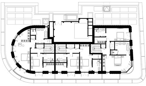 A trio of elegantly sculpted buildings offering residential and office accommodation in the heart of London’s Bankside. Located adjacent to the Tate Modern, the development –for JTRE London – extends the gallery’s landscape park setting eastwards by offering new public routes through the previously impermeable site to reinstate the lost historic street Emerson Place.