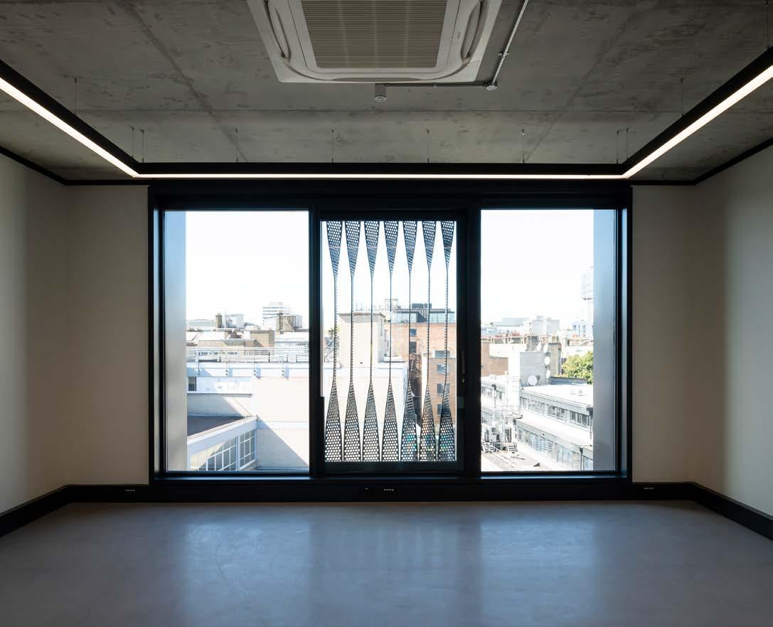 The Frames is a bespoke development tailored to small and creative businesses in Shoreditch. The five-storey building creates 80,000 sq ft of flexible work space for London’s new and growing companies, providing office and studio units to suit a variety of users, along with shared meeting rooms, break-out areas, tea points, cycle storage, shower facilities and a café.