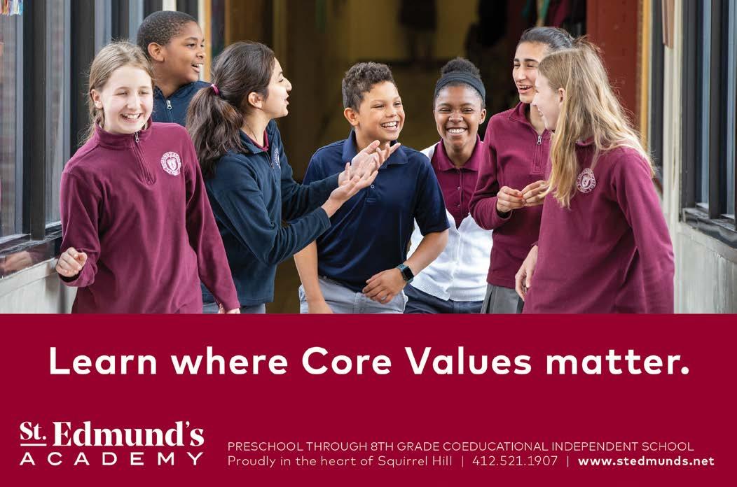 [Left] St. Edmund’s Academy students race through Schenley Park as part of the Wolfpack Weekend.