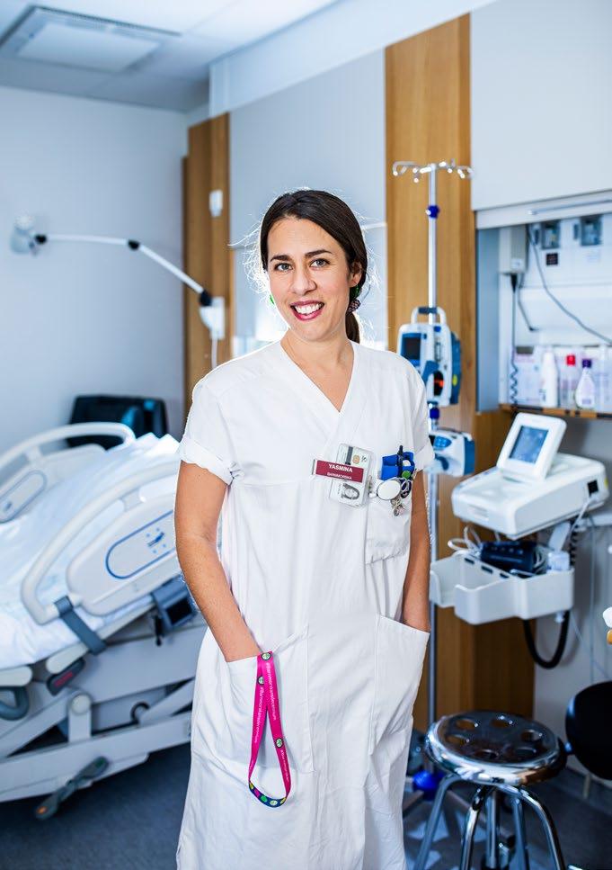 Barnmorskan Yasmina Jakobsson älskar sitt jobb trots att det är stressigt. Läs mer på sidan 26. FOTO: CHRISTIAN ANDERSSON