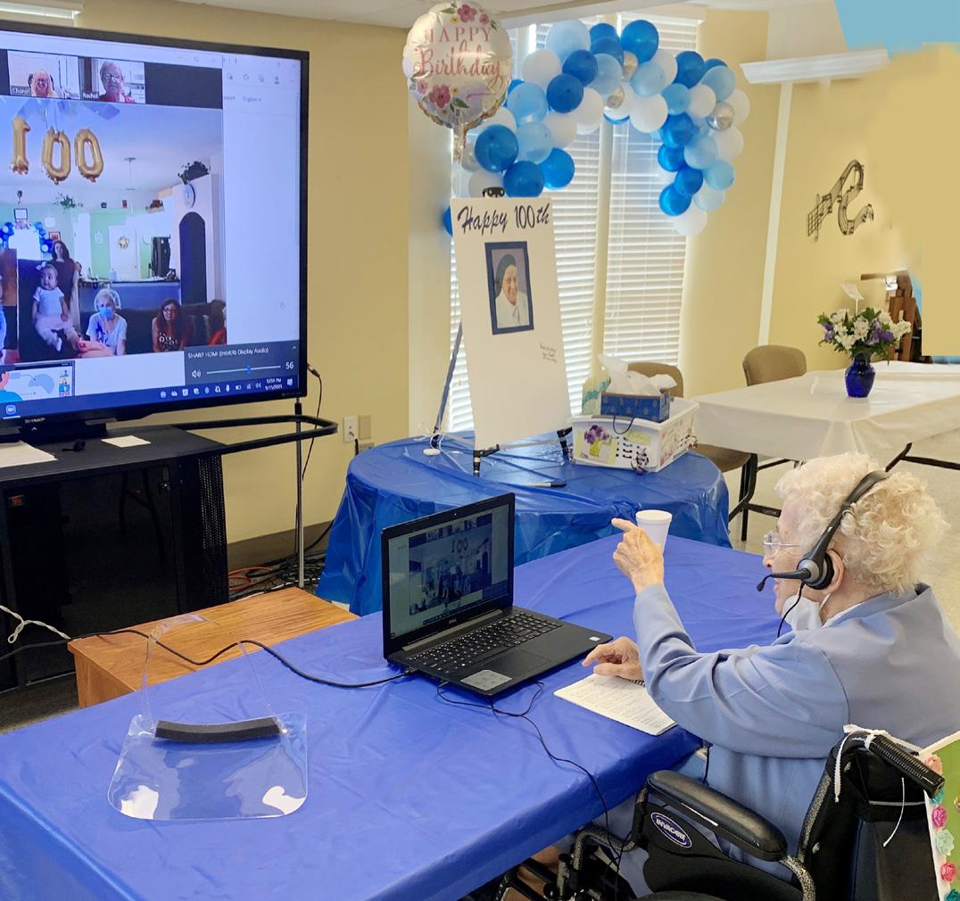 During her birthday week in September, S. Mary Loyola was showered with love, phone calls and messages from near and far. She enjoyed her first Zoom gathering with Associates in Florida, and celebrated with Sisters at the Motherhouse and Mother Margaret Hall. Sister even had the chance to enjoy a birthday breakfast with dear friends S. Dee and Jane. As she reflects on her 100 years of life, S. Mary Loyola says, “I’ve had a long life and a very pleasant life and I thank God for all the blessings that have come my way.”