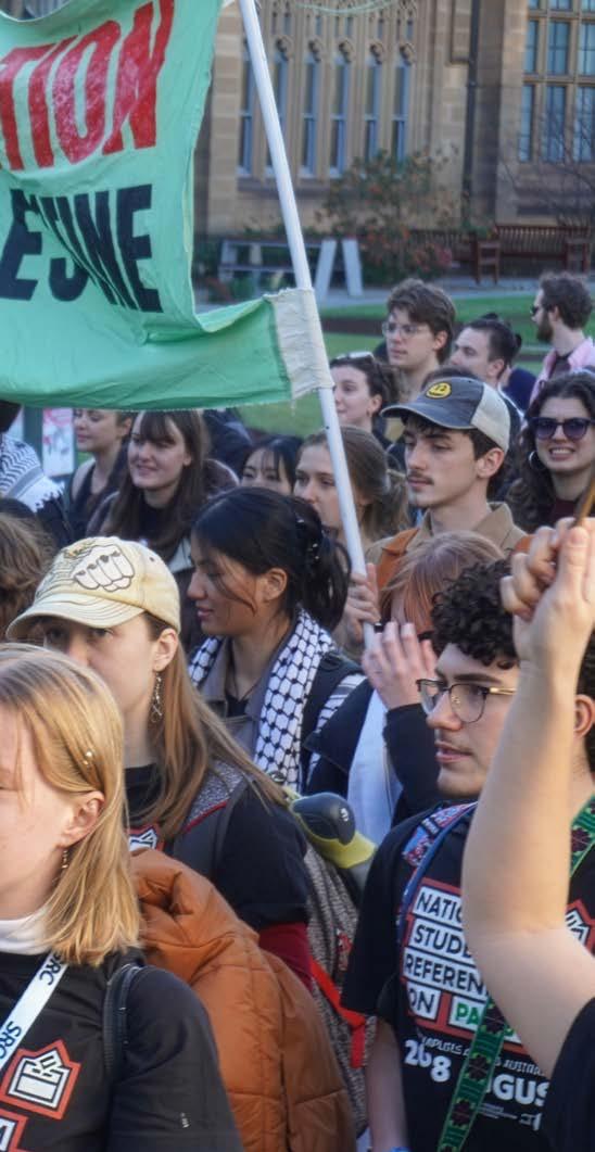 in society. We followed it up with a massive Student General Meeting of around 700 students, voting against USYD’s complicity, replicated again with the 2025 National Student Referendum. Off-campus, Sydney saw the largest march for Palestine in Australian history, as 300,000 people took to the Harbour Bridge in protest.