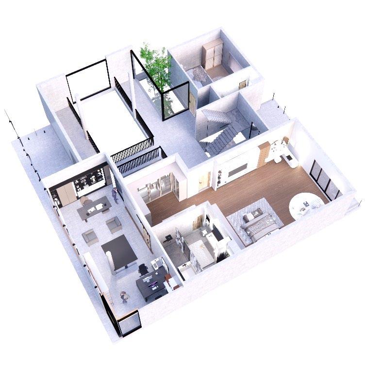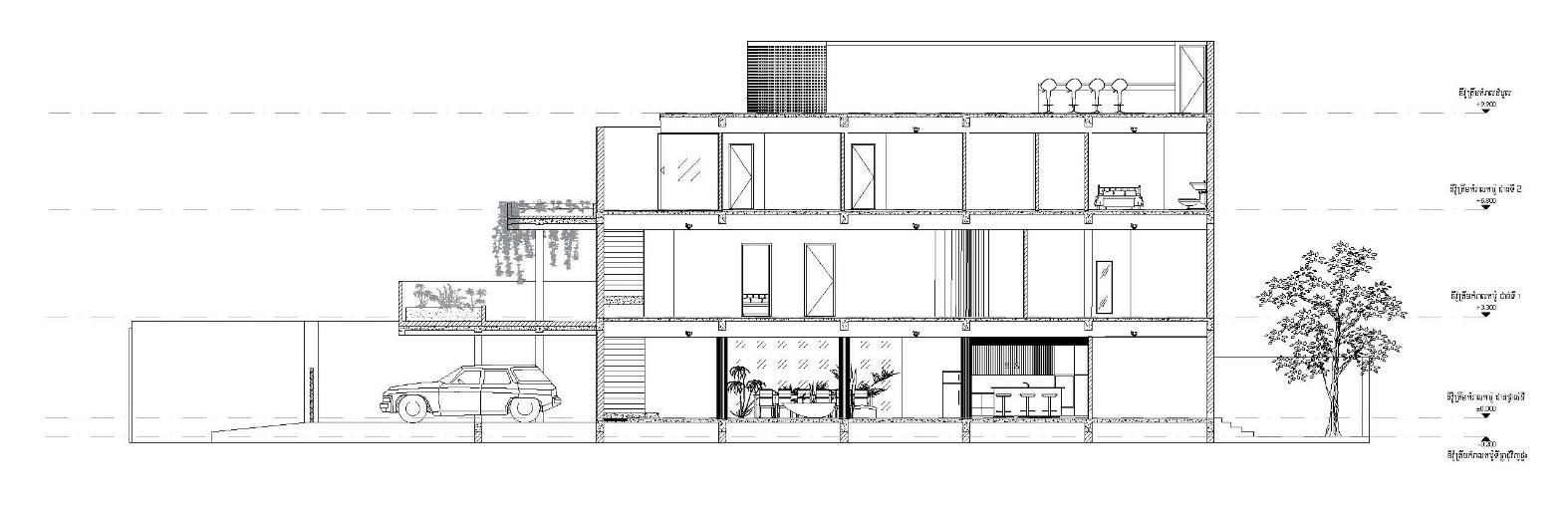 Housing interior structure : The interior is organized in such a way as to connect people and nature with a view mirror with plants, greens grown in parts of the house so that residents is able to view the green plants, feeling relieved and refreshed.
