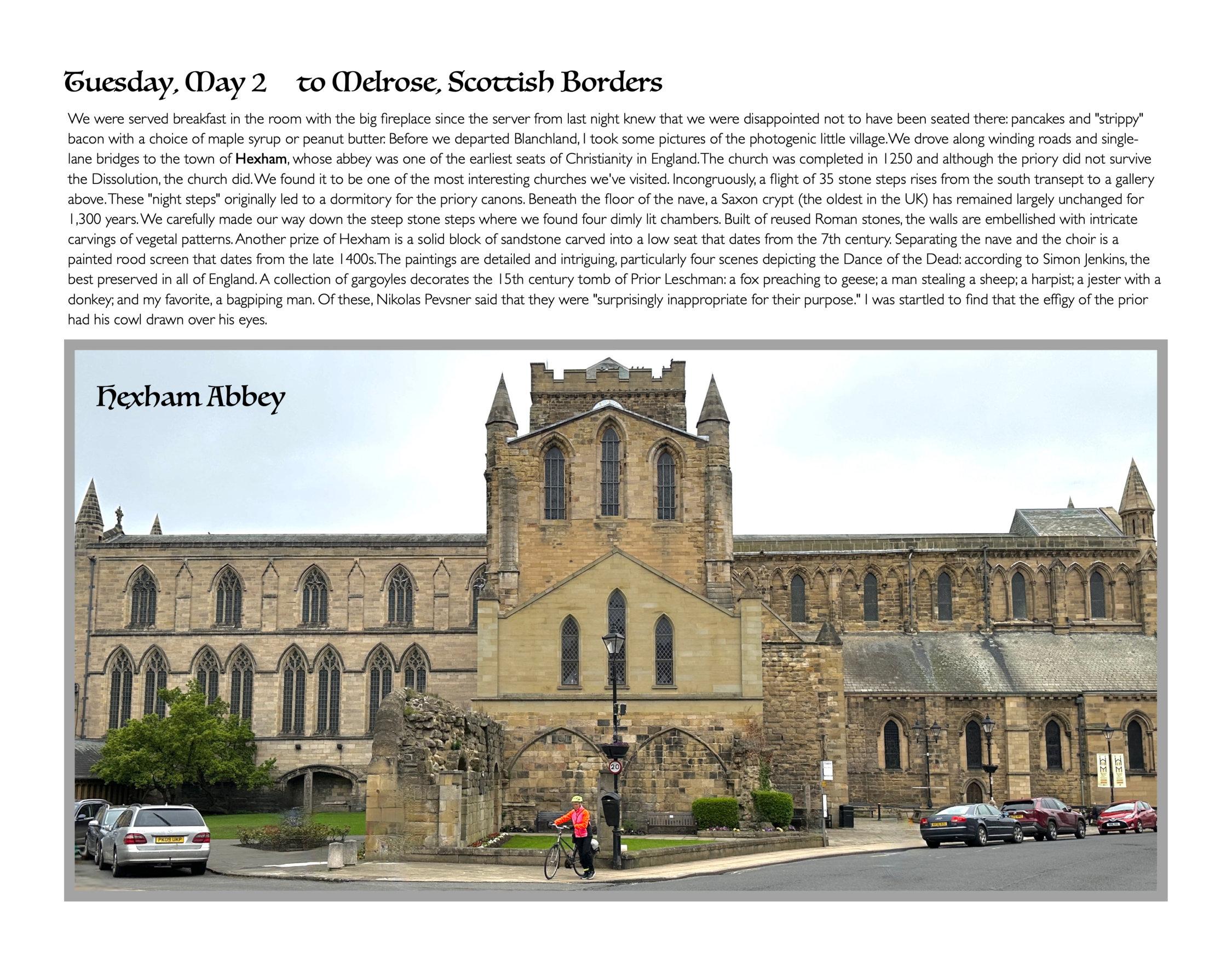 Our plans for this trip encompassed Scotland's churches and cathedrals, many of which, unfortunately, are ruined shells of their former magnificence due to Henry VIIl's dissolution of the monasteries. We also discovered that the Scots were undertaking extensive conservation and restoration projects throughout the country, resulting in restricted access at many of the sites we hoped to visit. Nonetheless, we were captivated by many churches, particularly those in Kirkwall, Durham, Hexham, and Elgin. We decided to expand our focus from the Early Middle Ages to the Neolithic period by seeking out the standing stones and ceremonial circles that exist throughout the Scottish mainland and islands. Our third focus was on whisky.
