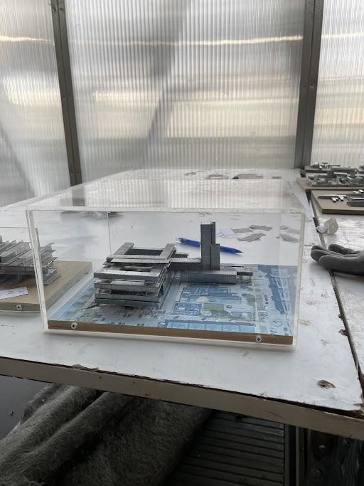 Next, utilizing pieces of acrylic, we utilized the CNC machinetocutoutboxestohousethemodels.