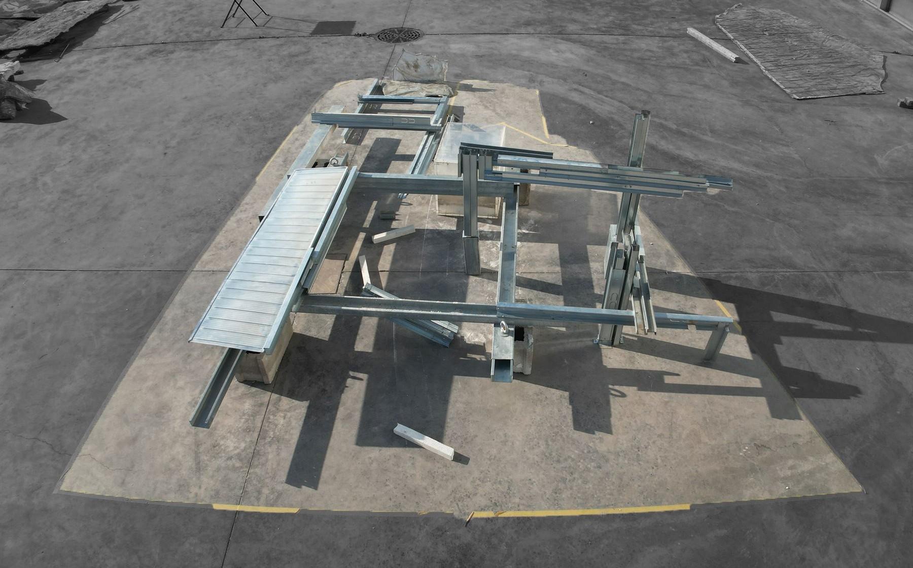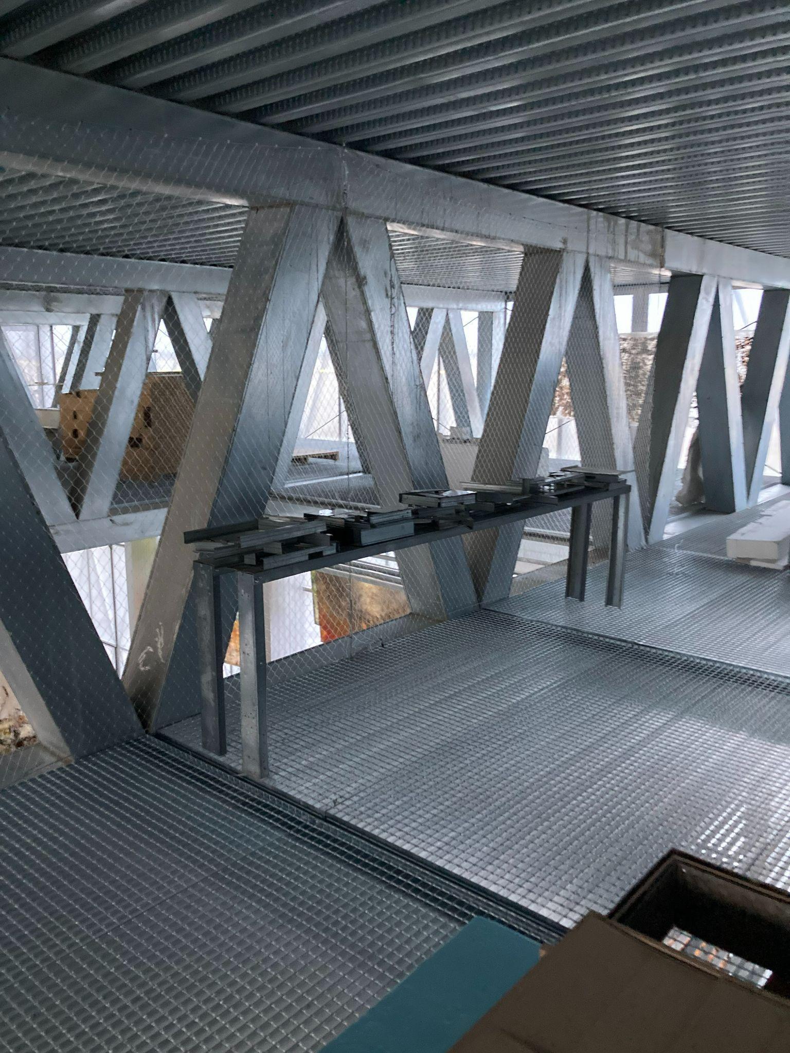 Afterwards,weattached2mmsteelloopstoeachend of the wire, sealing them tightly and securing them with wire clamps on either side of the profile. Additionally, intermediate steel wires with a diameter of 4mm were inserted between each section, further reinforcing the structural integrity of the setup.We replicated this process on the opposite side, ensuring that the intermediate wires were pulled taut to maintain proper tension throughout the system. To facilitate ease of use, steel hooks were affixed to connect the intermediate wires to the wires on either side, streamlining the process of removing the wires whenneeded.