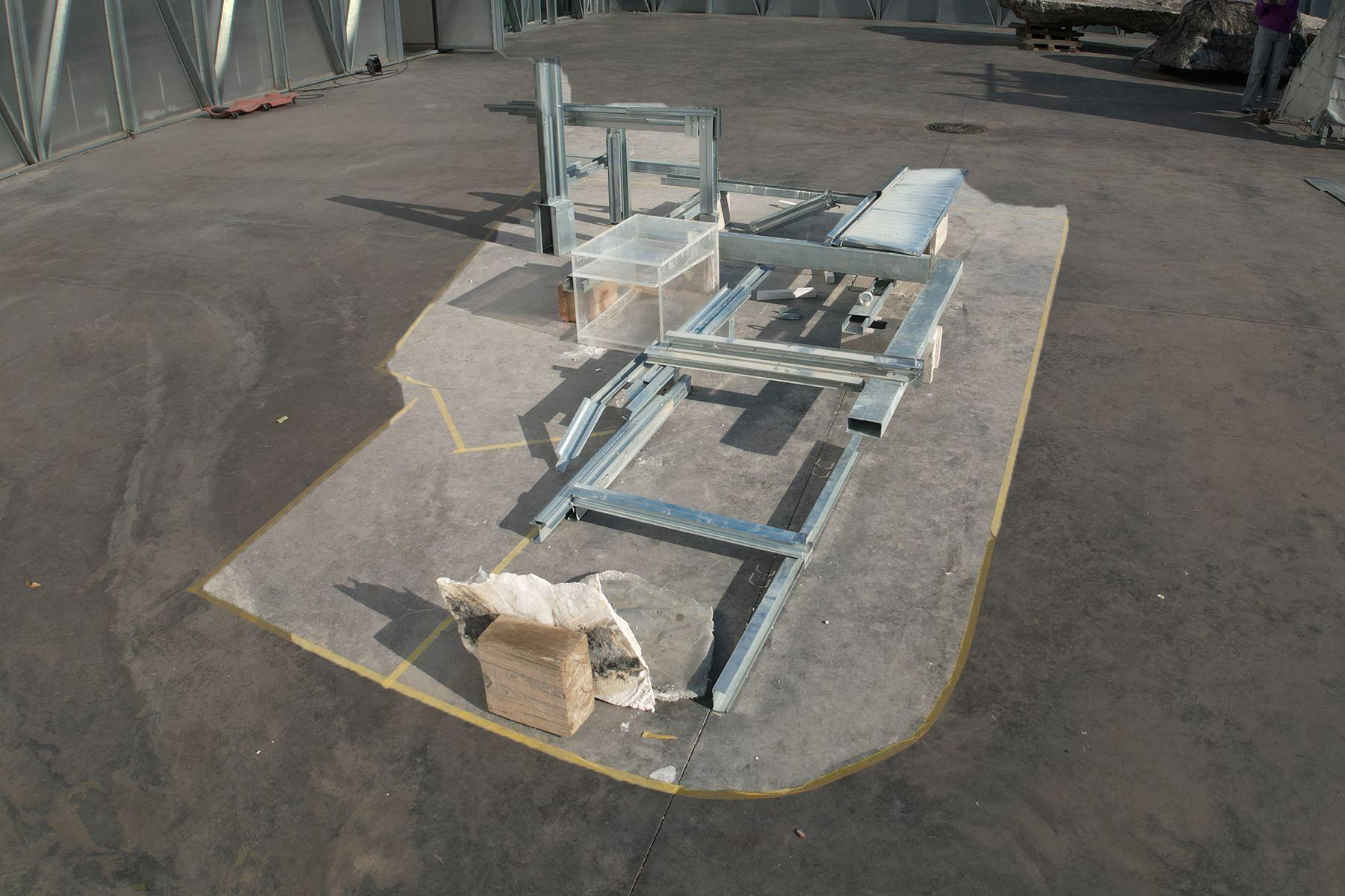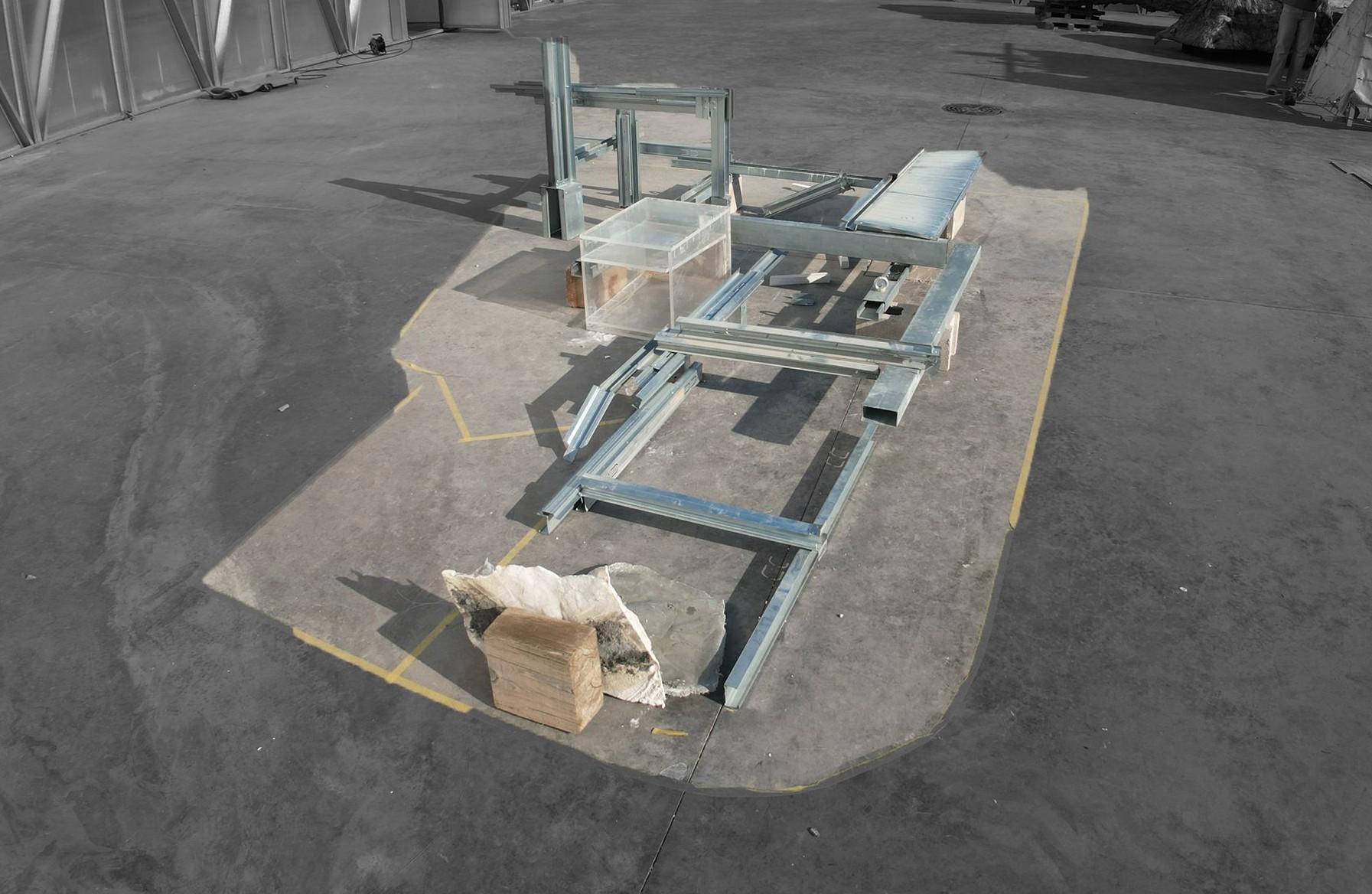 Comprising indoor and outdoor spaces, the factory offers versatility in prototyping environments. The indoorareaprovidesacontrolledsettingforbothonline collaboration and hands-on construction of prototypes. Meanwhile, the outdoor space serves as a dynamic arena for recent works and experimental projects, benefiting from ample sunlight ideal for material manipulation.