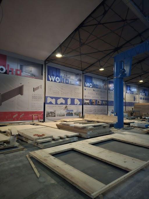 Following the prototyping process, materials are carefully handled, often fork-lifted, and transported indoors for further processing. This seamless workflow transitionbetweenindoorandoutdoorspacesfacilitates efficient experimentation, allowing WOHO to innovate at the forefront of architectural design and modular housingsolutions.