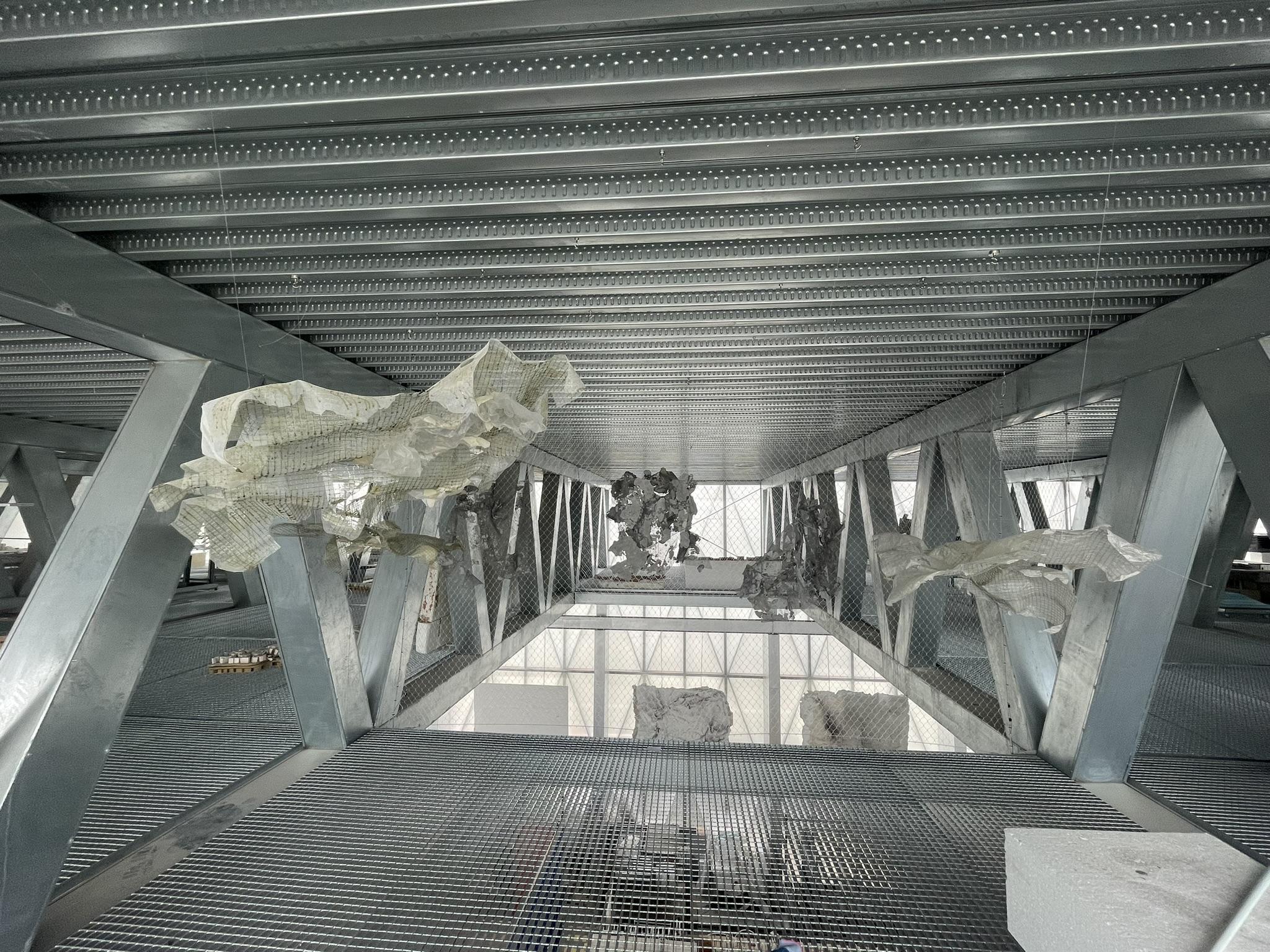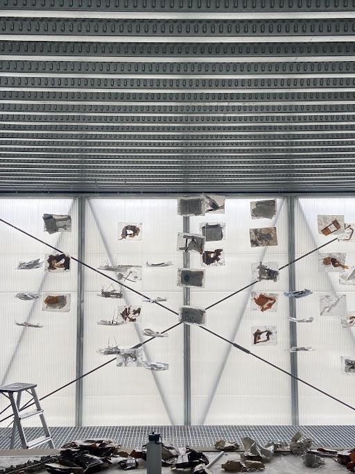 Tosuspendmodelswithinourspace,weutilized a combination of transparent stringed wires and steel wires. To secure these wires in place, we strategically positioned both regular and heavy-dutymagnetsontheroof.Thesemagnets servedasanchorpointsforattachingthestrings, which were then used to support and hold the models in their designated positions. This setup provided a flexible and reliable method for displaying the models, allowing for easy adjustments and ensuring their stability throughout.