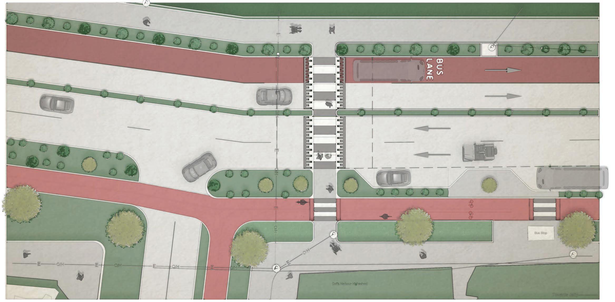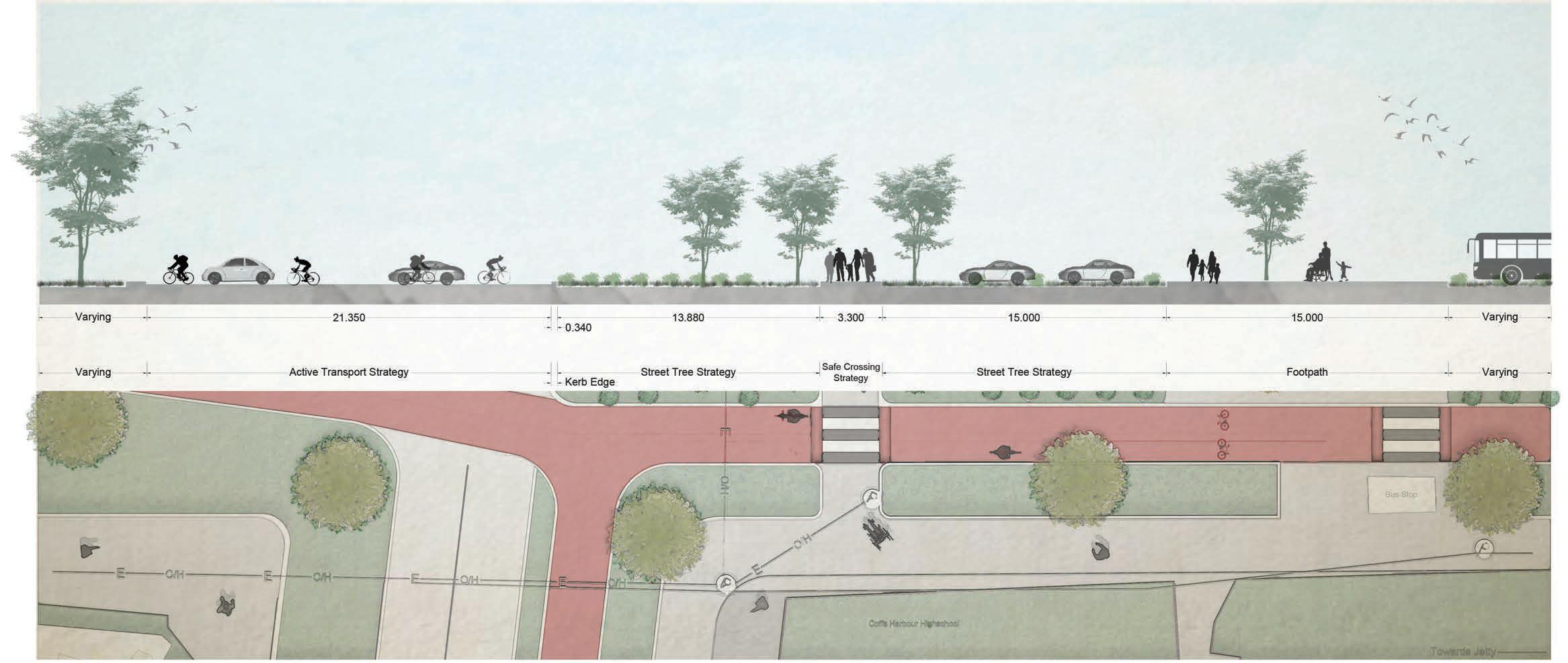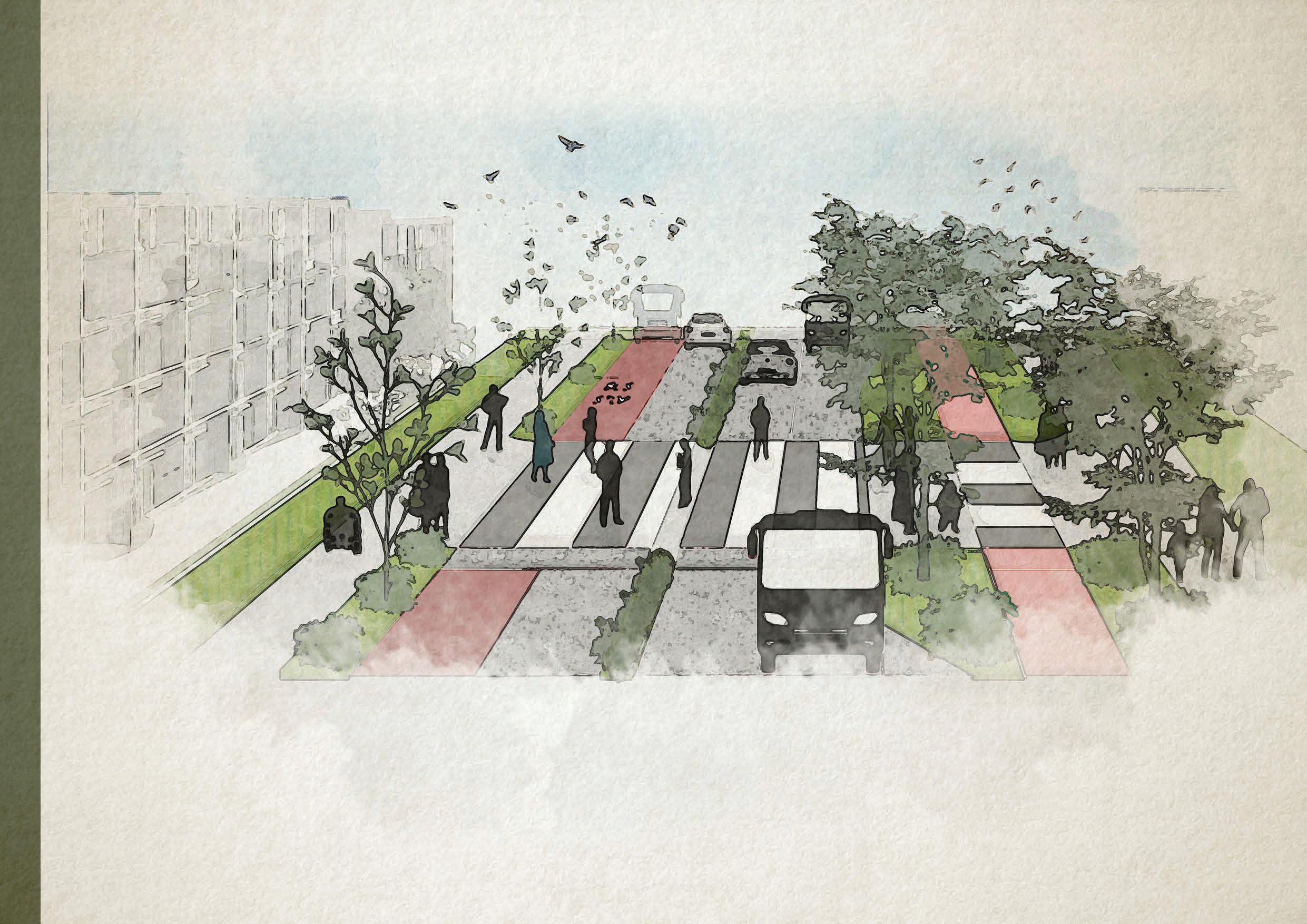 ‘An Interaction of ACTIVE TRANSPORT, SAFE CROSSING and STREET TREE strategies’