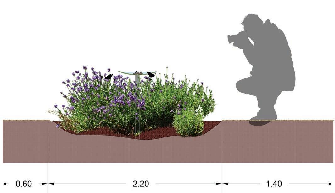 Green Buffer @ 50 MM Depth Material: WSUD Plants like Tall Sedge, Blue Flax Lily etc.
