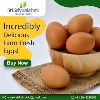 Sri Selvalakshmi Feeds & Farms is the best Egg poultry farm in Tamilnadu. Our farm consists of well-maintained chickens that provide huge quantities of eggs every day. We supply eggs at wholesale prices to various clients across Tamilnadu. We meet clients' bulk order necessities also. Since its inception, we are providing eggs to many retailers worldwide. The timeliness or on-time delivery made us stand competitive in this industry. We also stand for quality as we provide farm-fresh products without hassles. We have a wide transport network to supply eggs on time even during this new normal.